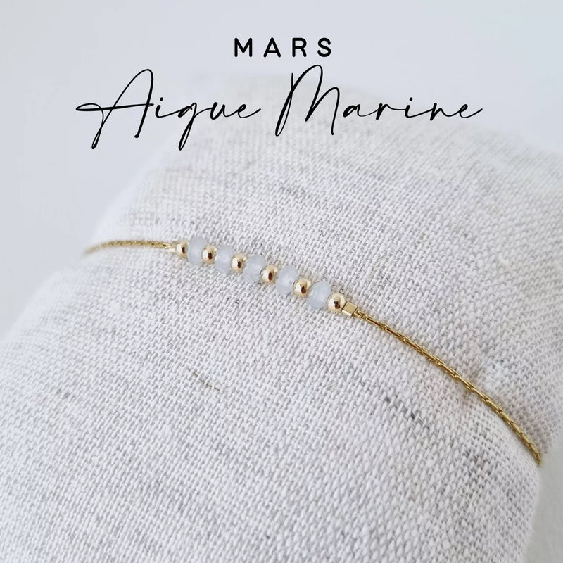 Bracelet pierre de naissance du mois de Mars : Aigue-Marine